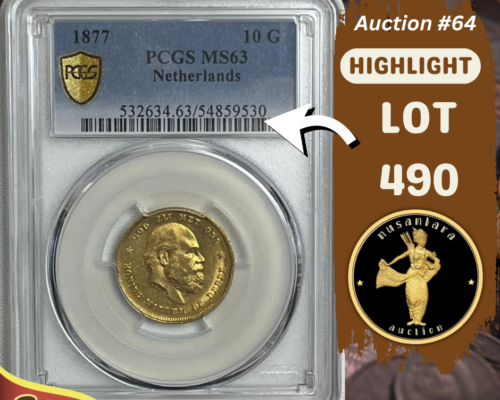 [LOT 423 NA#64] INDONESIA, 100 RUPIAH ORI SOEKARNO PMG ABOUT UNC 50 1947 SERIAL # 092329NB BLOCK GASOLD AS SEEN ON THE IMAGES View Details [LOT 450 NA#64] NETHERLAND INDIES, 50 GULDEN WAYANG PMG CHOICE VERY FINE 35 1938 SERIAL # LA02346View Details [LOT 449 NA#64] NETHERLANDS INDIES, 25 GULDEN WAYANG WAVEREN PMG CHOICE UNC 58 EPQ 1938 SERIAL# GR08638View Details [LOT 458 NA #64] SCARCE NETHERLANDS INDIES, 1 GULDEN DUTCH ADMINISTRATION PMG ABOUT UNC 50 1815View Details [LOT 490 NA#64] NETHERLANDS, 10 GULDEN WILLEM GOLD COIN PCGS MS63 1877SOLD AS SEEN ON THE IMAGES View Details NUSANTARA AUCTION 64 LIVE AUCTIONView Details [LOT 491 NA#64] NETHERLANDS, 5 GULDEN WILHELMINA GOLD COIN PCGS MS 61 1912View Details Past Highlights Featured lots are not always available. You can check our past highlights too. View All Highlights > Have an Item for Sale? If you have an item that you think might be of interest for us, please send it over for a free evaluation. Consign An Item