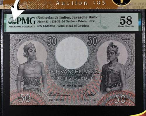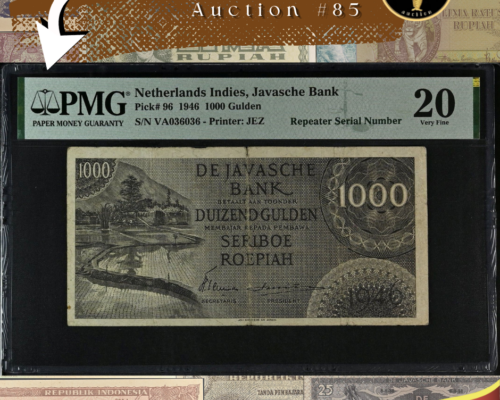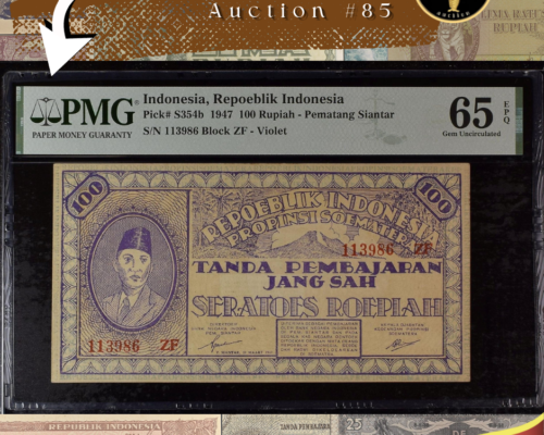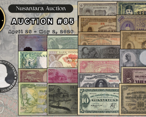 [LOT 268 NA#85] TOP POP INDONESIA, 750 RUPIAH SILVER COIN GARUDA BIRD NGC PF 69 ULTRA CAMEO 1970SOLD AS SEEN ON THE IMAGES View Details [LOT 269 NA#85] INDONESIA, 1.000 RUPIAH SILVER COIN GENERAL SOEDIRMAN NGC PF 68 ULTRA CAMEO 1970View Details [LOT 270 NA#85] TOP POP INDONESIA, 10.000 RUPIAH GOLD COIN KOMODO DRAGON CONSERVATION SERIES NGC PF 69 ULTRA CAMEO 1974View Details [LOT 224 NA #85] RARE NETHERLANDS INDIES, 50 GULDEN WAYANG WAVEREN PMG CHOICE ABOUT UNC 58 1938 SERIAL# LG09932View Details [LOT 213 NA#85] NETHERLANDS INDIES, 1.000 GULDEN FEDERAL REPEATER SERIAL NUMBER PMG VERY FINE 20 1946 SERIAL # VA036036SOLD AS SEEN ON THE IMAGES View Details NUSANTARA AUCTION 85 LIVE AUCTIONView Details [LOT 199 NA#85] SECOND TOP POP INDONESIA, 100 RUPIAH ORIDA PEMATANG SIANTAR VIOLET PMG GEM UNC 65 EPQ 1947 SERIAL # 113986 BLOCK ZFView Details Past Highlights Featured lots are not always available. You can check our past highlights too. View All Highlights > Have an Item for Sale? If you have an item that you think might be of interest for us, please send it over for a free evaluation. Consign An Item
